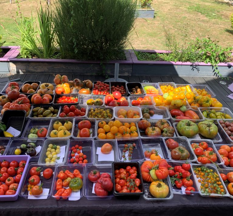Avec plus de 130 pieds de tomates cultivés cette saison dans ces conditions idéales, la récolte 2022 fut exceptionnelle et plus qu'abondante.